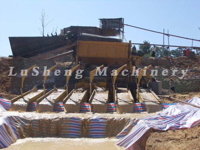 重選法作為砂錫礦的粗選不僅降低了浮選流程的成本和設(shè)備投資,同時(shí)對(duì)于單體解離度高的砂錫礦也可以重選即得到精礦。因此重選法和重選設(shè)備對(duì)砂錫礦的選礦是不可少的。砂錫礦中含金的礦不在少數(shù),在馬來西亞。較多的砂錫礦中有不少金的含量都比較高。選錫選金設(shè)備在馬來多個(gè)礦區(qū)已經(jīng)投入使用。
