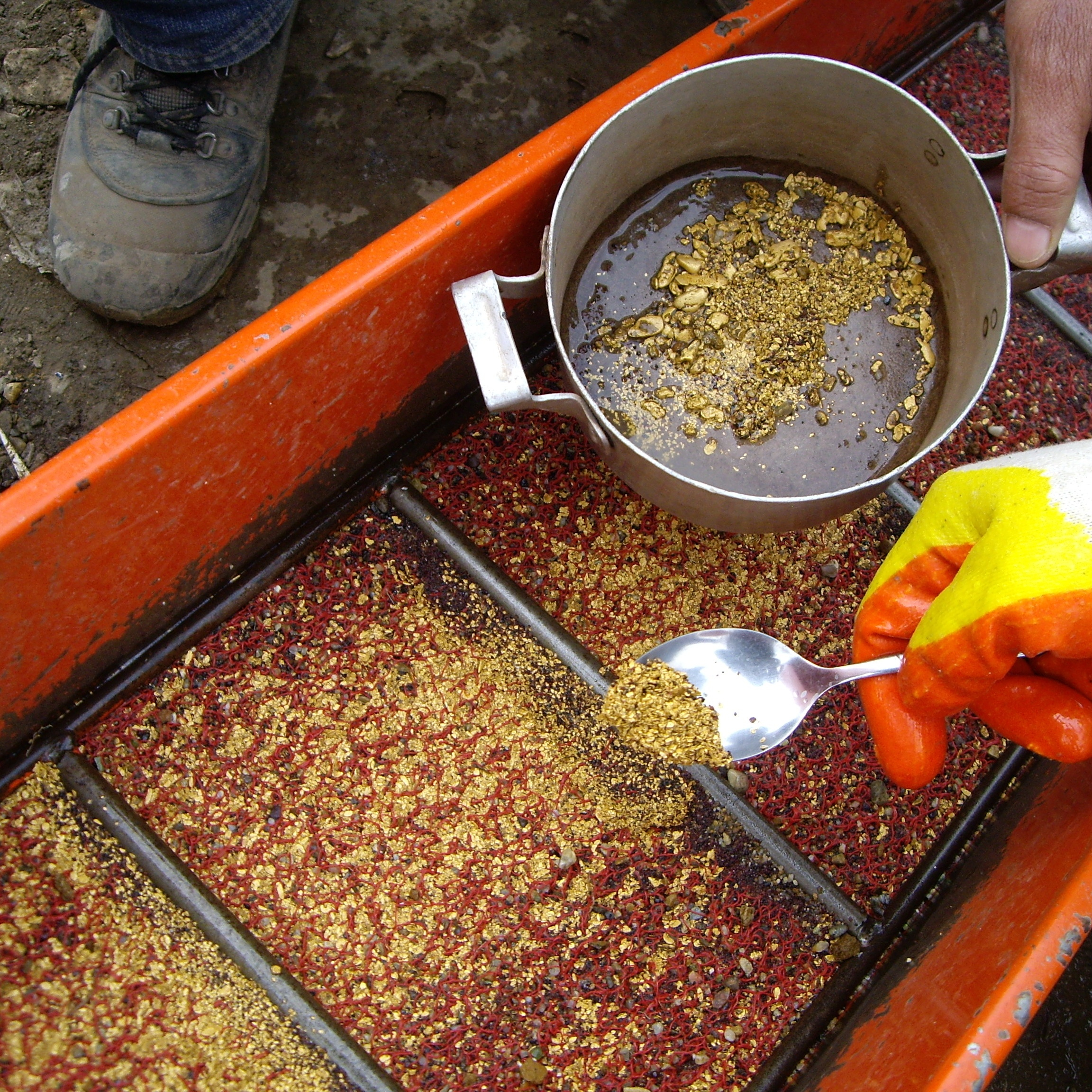 在加納看到古老的礦井是奧布阿西的阿山蒂礦山,這是一個大的礦山,據說該礦山自一八九八年開始開采至今了。中國人過來做黃金礦體基本上是開采沙金礦,跟國外大公司開采的大型礦山是無法比擬的。屬于小打小鬧的那一種,但是一樣能產生巨大效益。這主要歸納于加納的沙金分布得十分的廣,而且也十分的豐富。在西部省附近的河道里基本上都能淘洗出細小的金沙,山上也有地殼運動改變的古河道,所以山上也有很多沙金礦層。 中國人做沙金的礦區分布在庫瑪西、敦夸、安陽弗瑞、波果樹與皮西亞等幾個地區,主要開采方式是魯晟機械的砂泵、大溜槽、挖斗船與滾筒篩。