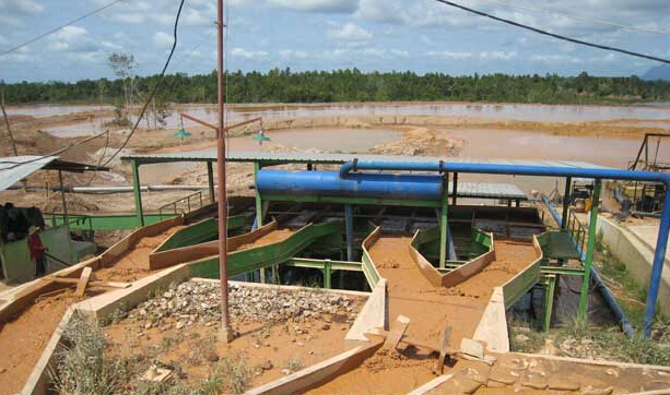 一般情況下單體解離度較高的砂錫礦經(jīng)過(guò)鼓動(dòng)溜槽重選之后即可得到的高品位精礦,但是對(duì)于單體解離度較低的砂錫礦還需要進(jìn)行普通的研磨浮選的提純過(guò)程才能達(dá)的精礦品位,不需要進(jìn)行浮選提純便可達(dá)到精礦品味。魯晟的自動(dòng)排礦尼爾森水套離心機(jī)便可將其富集到精礦品味。 重選法作為砂錫礦的粗選不僅降低了浮選流程的成本和設(shè)備投資,同時(shí)對(duì)于單體解離度高的砂錫礦也可以重選即得到精礦。因此重選法和重選設(shè)備對(duì)砂錫礦的選礦是不可少的。以下是印尼砂錫礦選礦現(xiàn)場(chǎng)的部分圖片: